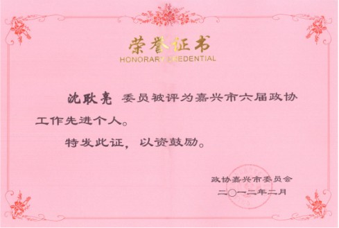 董事长沈耿亮被评为“嘉兴市六届政协事情先进小我私家”