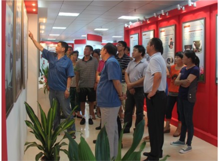 7月26日,江苏法尔胜特钢制品有限公司代表团一行来我公司旅行考察。公司董事长沈耿亮,副董事长沈会民等向导热情接待并陪同旅行了中欧体育双强建设展示厅及各生产车间。